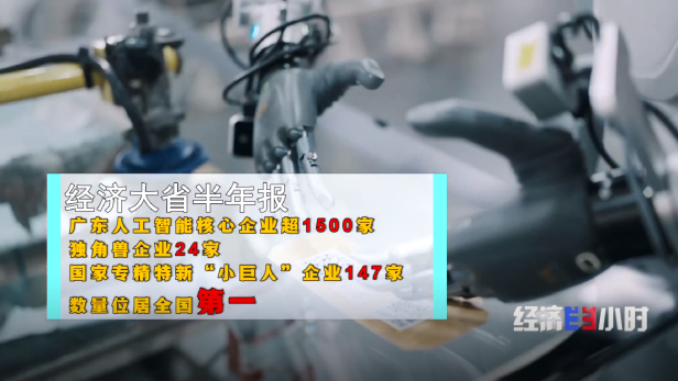 截至今年上半年,广东人工智能核心企业超1500家,其中独角兽企业24家、国家专精特新“小巨人”企业达到147家,数量位居全国第一。