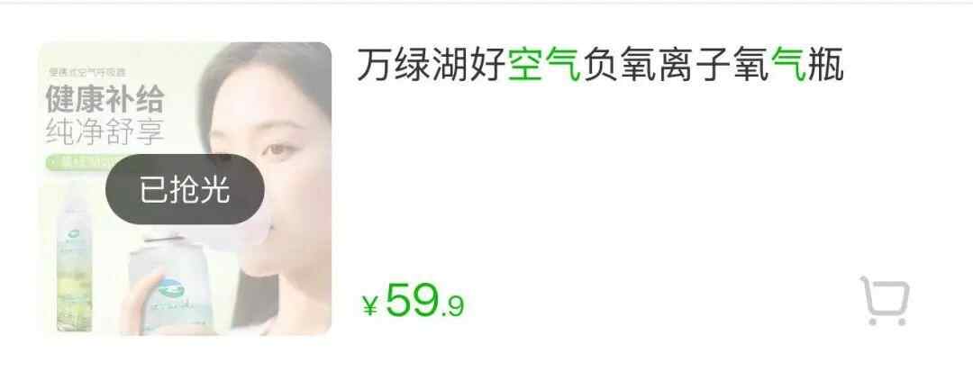 据万绿湖景区“空气罐头”经销商接受媒体采访时表示,该产品发布后已经被抢空,产品主要是让大家感受万绿湖的空气,有的地方空气不是很好,可以多吸吸我们这儿的清新空气。7月16日,记者在售卖该产品的店铺看到,这款名为“万绿湖好空气负氧离子氧气瓶”的产品售价59.9元,且已售罄。店铺工作人员称,目前空气罐头还是缺货状态,会不会补货并不清楚。