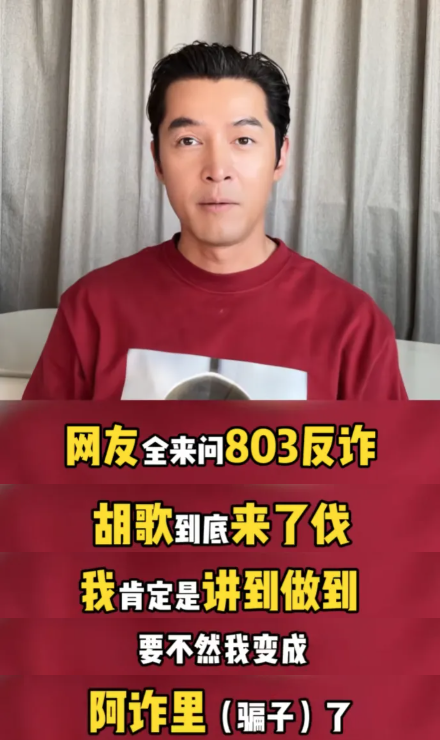 胡歌在视频中跟观众打招呼,他说:网友都来问803反诈胡歌到底来了吗?我肯定说到做到,否则我成“阿诈里”(骗子)了。