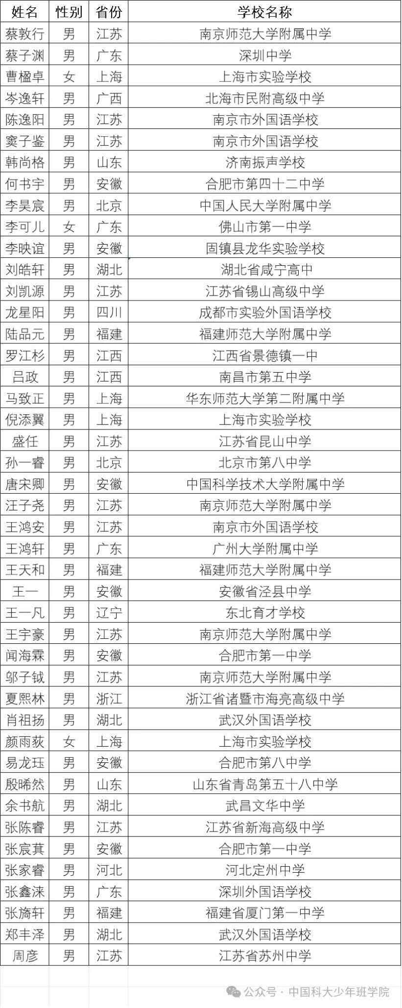 7月16日晚,中国科学技术大学少年班学院官方微信公众号公布了《中国科学技术大学2025年少年班录取名单公示》,共有44名学子入围。从性别来看,男生共有41人,女生3人。