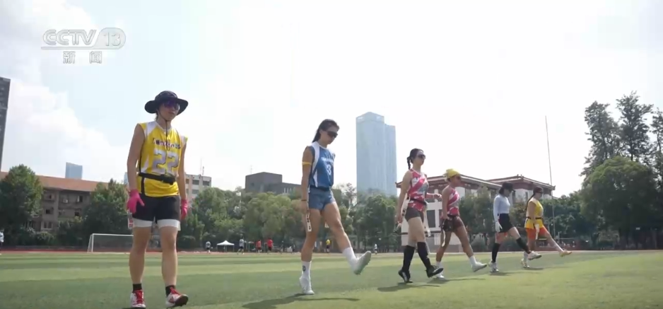 在四川大学望江校区的足球场,一场腰旗橄榄球比赛正在火热进行中。场上的“90后”女孩王玲娇是一名舞蹈老师,结束工作后,来一场酣畅淋漓的比赛已经成了她的习惯。
