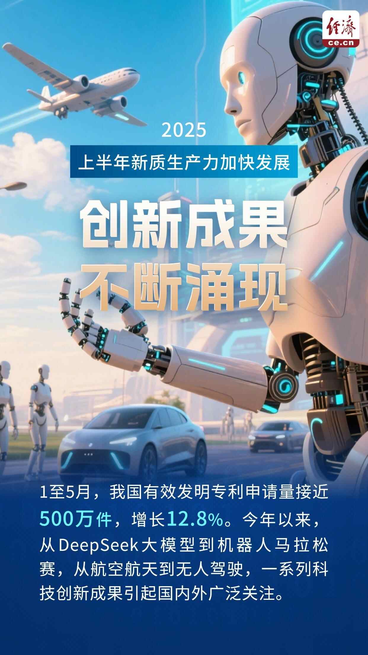 国务院新闻办公室7月15日就2025年上半年国民经济运行情况举行新闻发布会。国家统计局相关负责人表示,各地因地制宜发展新质生产力,加大技术创新和产业创新融合发展力度。从五个方面来看,上半年新质生产力在加快发展。一起来看↓