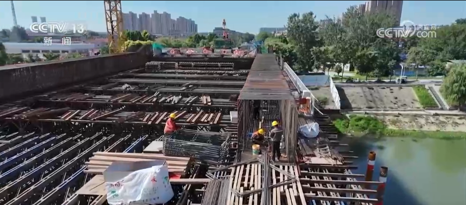 持续的晴热天气给河南各地的重点工程项目和生产一线建设也带来“烤”验。这是沙颍河周口至省界航道提升工程通济大道桥施工现场,工人们正在安装桥面钢筋。工人们穿戴了一款特殊的空调防护服,通过内置风扇和冰袋循环系统进行降温。