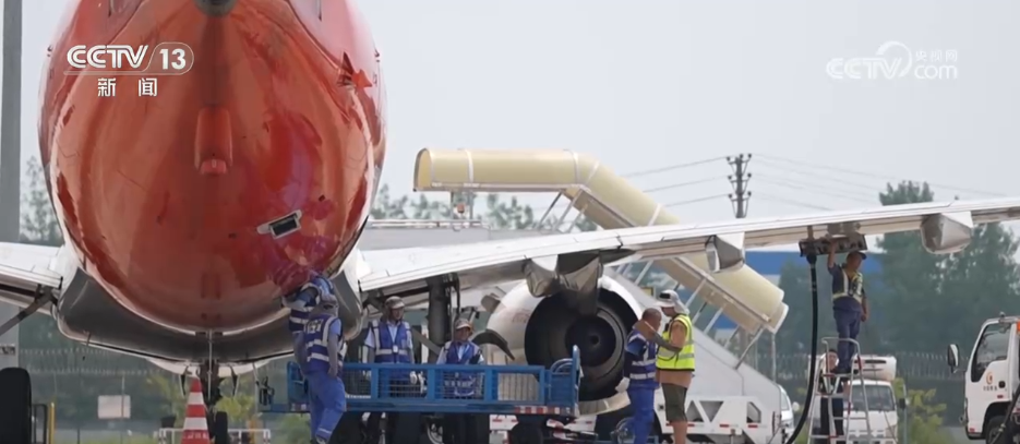 7月16日上午,成都市气象台发布了高温红色预警信号,多地最高气温超过40℃。在成都双流国际机场的停机坪,地表温度甚至逼近50℃。在这样的酷热中,为保障暑期客货运航班运输安全有序,机场一线的地勤人员顶着高温坚守岗位,通过倒班协作,保障暑期运输。