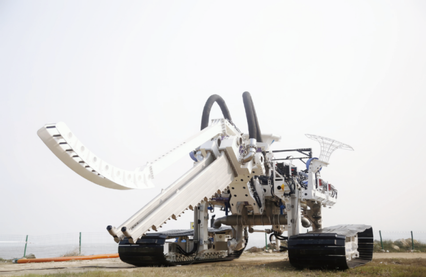 履带行进式挖沟机采用全开架式结构,水下重量大,使其能有效抵抗洋流和开沟反作用力,确保在近海洋流较大海域平稳作业,一般适合用于洋流较大的近海海域。由于其大重量限制了其在深水的应用(吊放设备及缆绳过重),为避免深水作业塌方,其开沟作业部通常位于尾部。因此,该设备最适合的作业场景是近海浅海大深度管缆埋设,如欧洲海上风电的海底电缆铺设和近海油气管道工程。