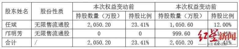 因离婚分割999.6万股