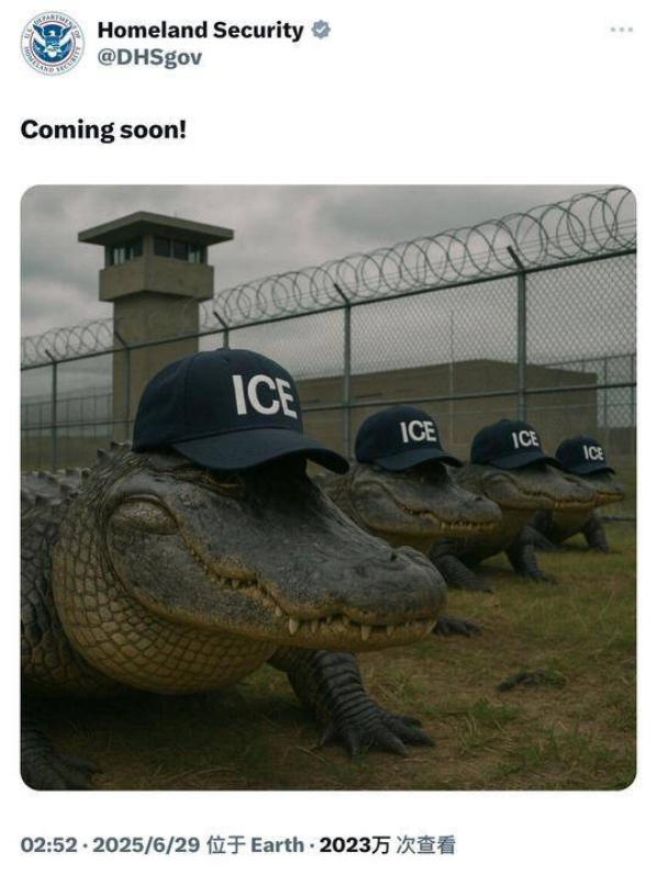 “鳄鱼恶魔岛”不仅是移民政策的试验场,更是美国社会极化的缩影。表面上是特朗普政府用来“吓阻”越境者的硬件升级,骨子里却是一场以国家暴力为底色的政治秀,美名其曰“自然威慑”,实则违背人道主义,依赖恐惧政策。