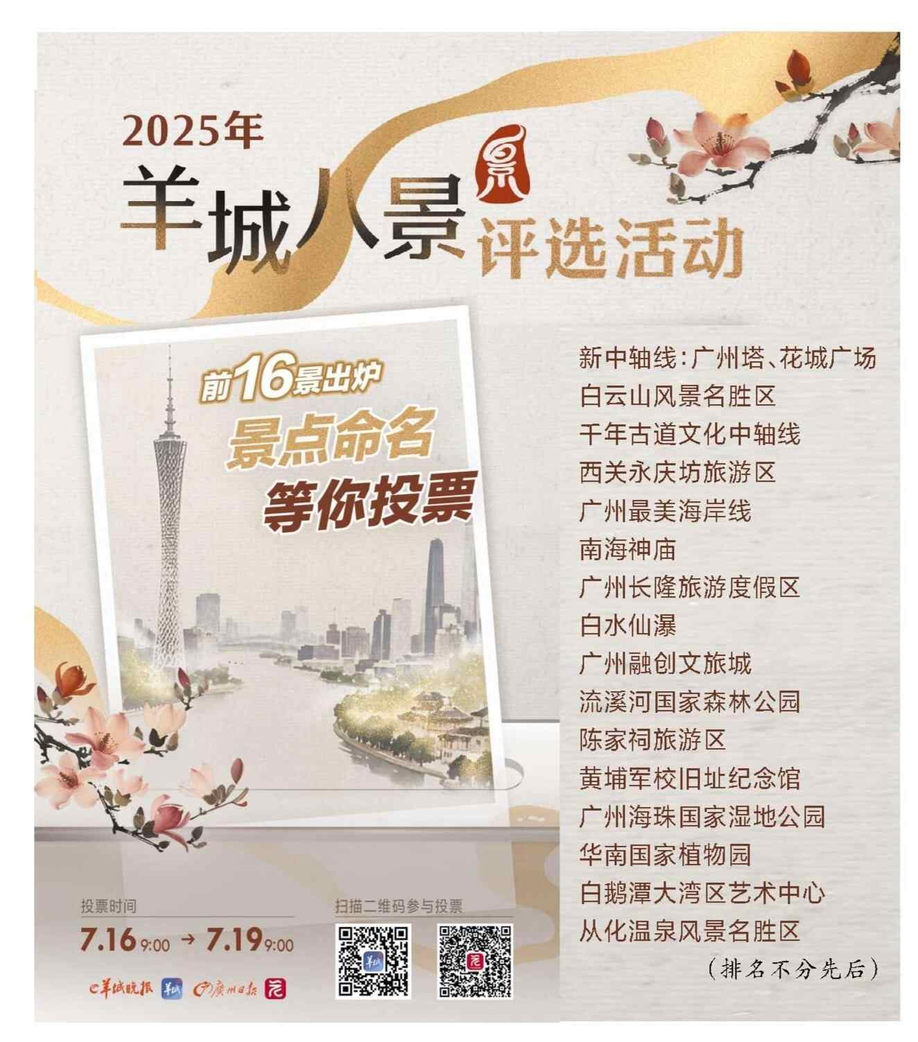 2025年“羊城八景”评选活动前16景出炉,开启为期三天的名称网络投票