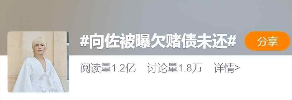7月15日,据媒体报道,演员向佐被曝欠下赌债未还遭到澳门美高梅赌场提告追讨,金额高达140万港币(约合128万元人民币),目前此案已由香港区域法院受理中。