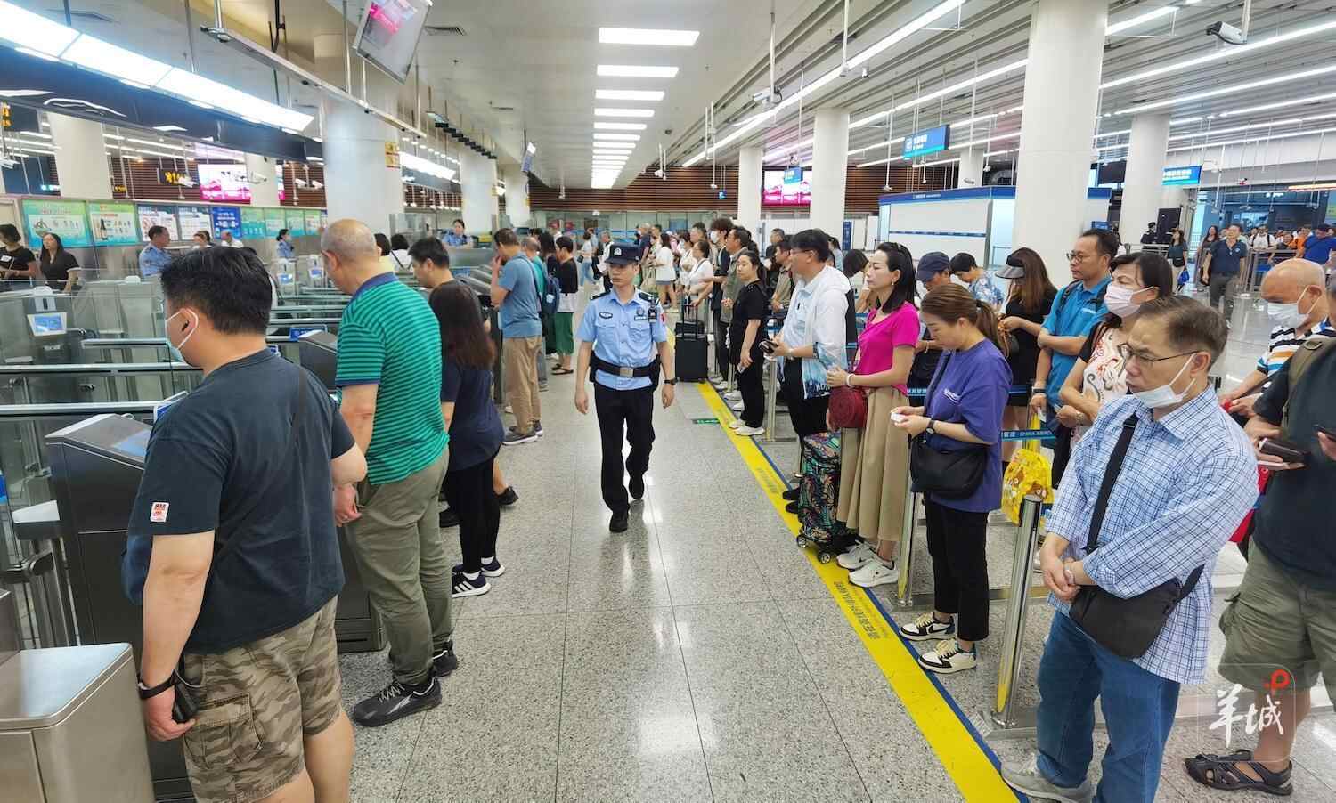 为积极应对跨境消费旅游热潮,皇岗边检站严格落实“保畅顺、防拥堵”11项举措,深化“多警种+跨区域”警务协作机制,不断加强新型基础设施应用和新锐装备设备探索,依托临时人工查验台、手持式移动查验终端(PDA)实现临时查验通道快速扩增,同时密切与香港入境事务处、交通运输部门、属地公安机关联络会商,研发启动大数据客流预测系统,强化流量监测预警,及时发布“两公布一提示”,引导旅客错峰出行,并竭诚为老、幼、病、残、孕等特殊人群暖心服务与人文关怀,努力营造宾至如归的通关环境。