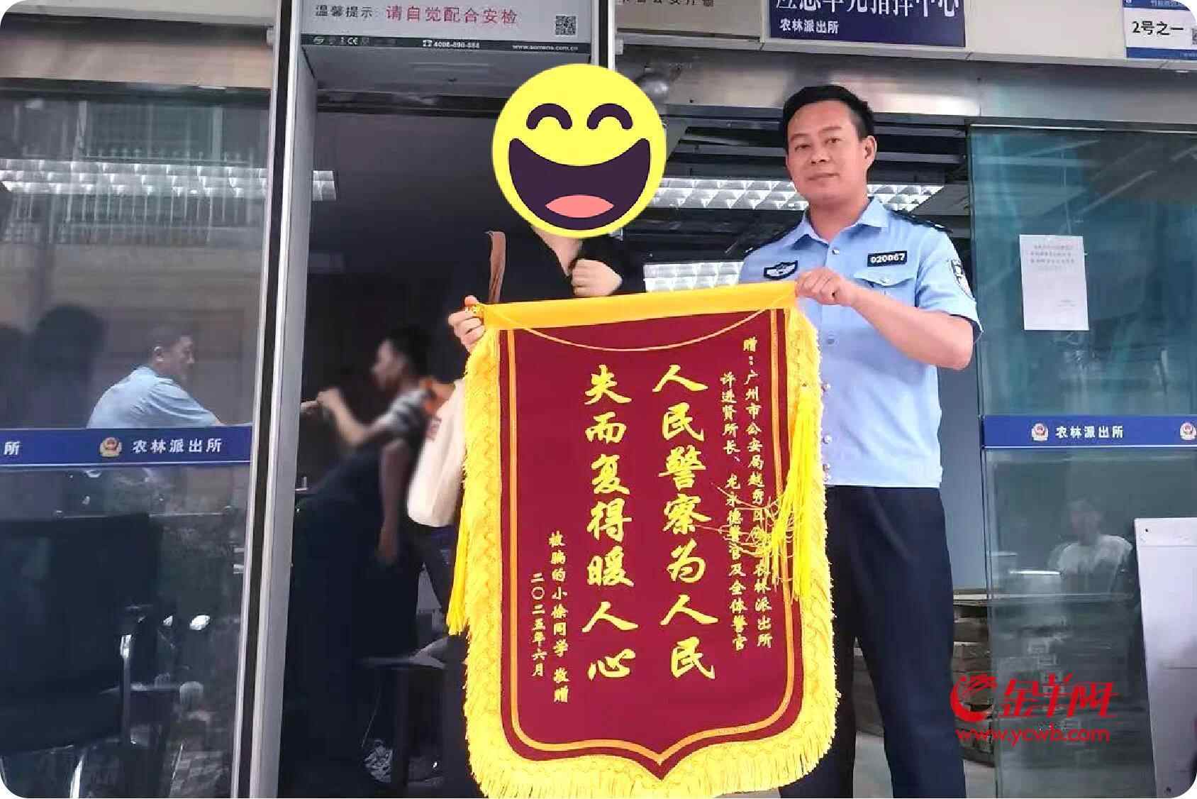 “人民警察为人民,失而复得暖人心”。近日,大学生徐同学将写着烫金大字的锦旗送到广州市公安局越秀区分局农林派出所,感谢民警帮其全额追回被骗资金。