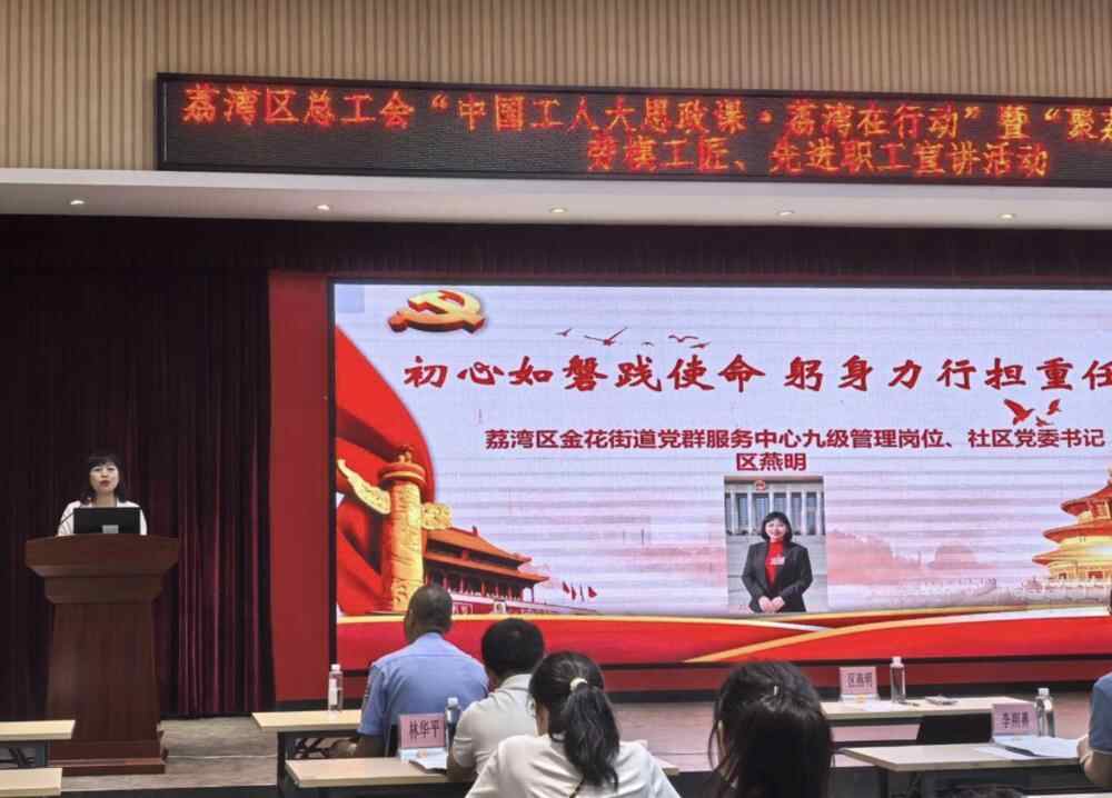 2025年是中华全国总工会成立100周年,为大力弘扬劳模精神、劳动精神、工匠精神,近日,广州市荔湾区总工会举办“中国工人大思政课·荔湾在行动”暨“聚荔发展·活力湾区”劳模工匠、先进职工宣讲活动。