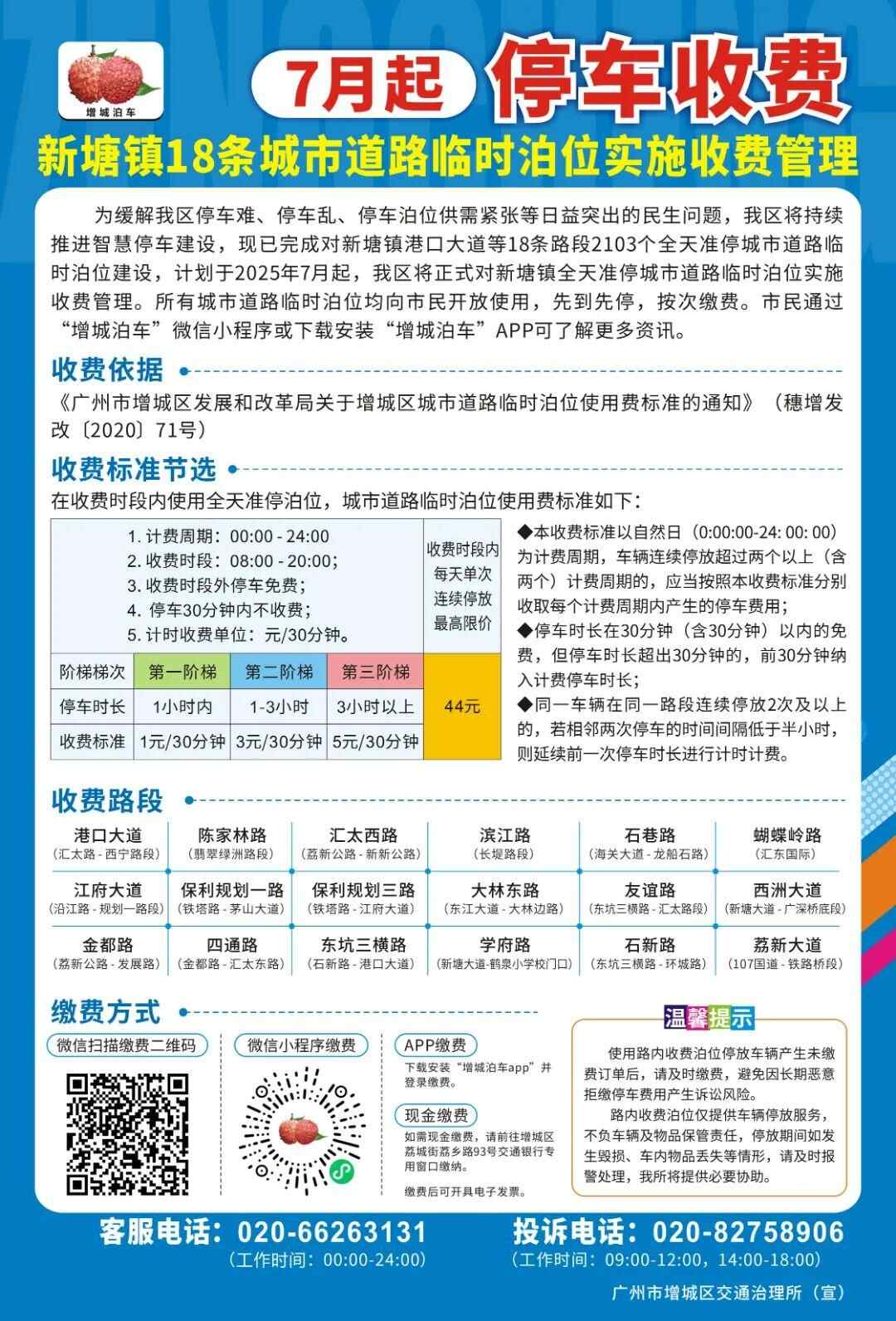 目前,新塘镇港口大道等18条路段2103个全天准停城市道路临时泊位已完成建设。2025年7月起,增城区正式对新塘镇全天准停城市道路临时泊位实施收费管理。