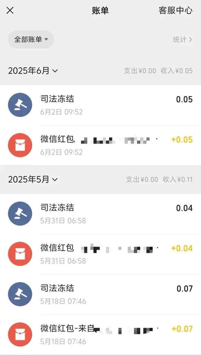 王喜民的微信零钱账户也被冻结,抢到红包后随即被司法冻结。