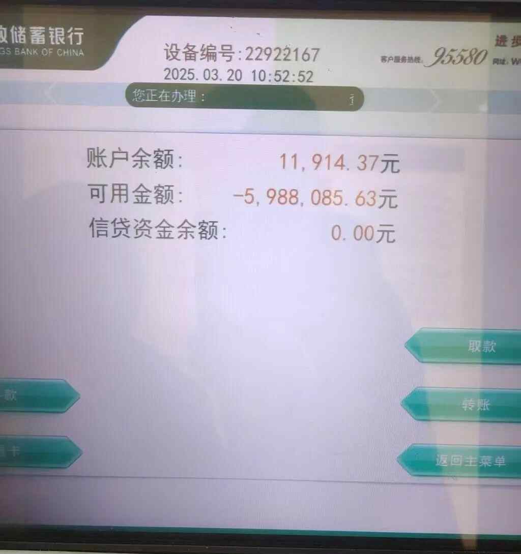 -5988085.63元,这是吉林省德惠市米沙子镇太平村村民王喜民银行卡上的可用余额。没被冻结600万元前,他的银行卡上也只有11914.37元。