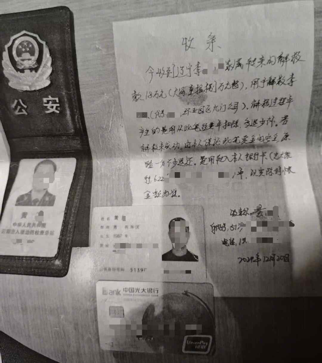 李敏称,担心侄子遭到毒打、虐待,她连夜带着赎金前往昆明。当面核实了黄某的身份信息后,双方签署协议并转账18万元。