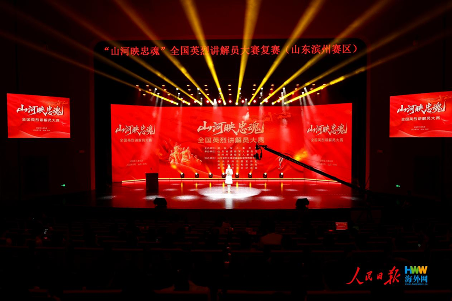 7月16日,由退役军人事务部主办的“山河映忠魂”全国英烈讲解员大赛首场复赛在山东滨州举行。(海外网 谢明 摄)