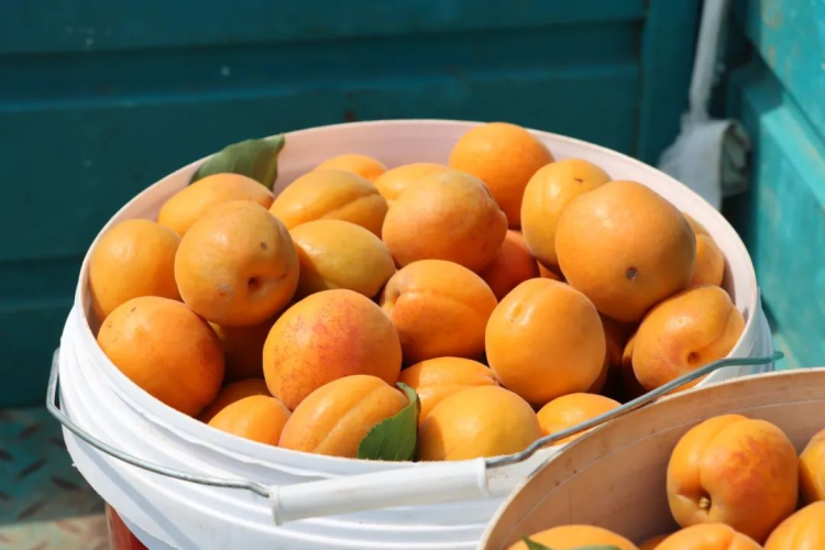 在新庄堡村,竹筐里的杏果在阳光下闪耀着诱人的光泽,空气中的果香愈发浓郁,引得人垂涎欲滴,只想立刻拿起一颗品尝那清甜滋味。
