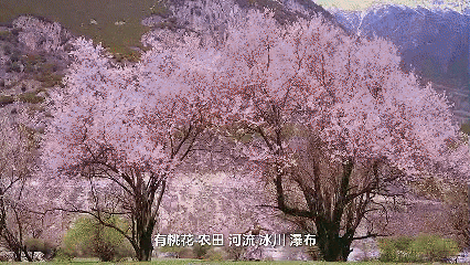 桃花、农田、河流、冰川、瀑布