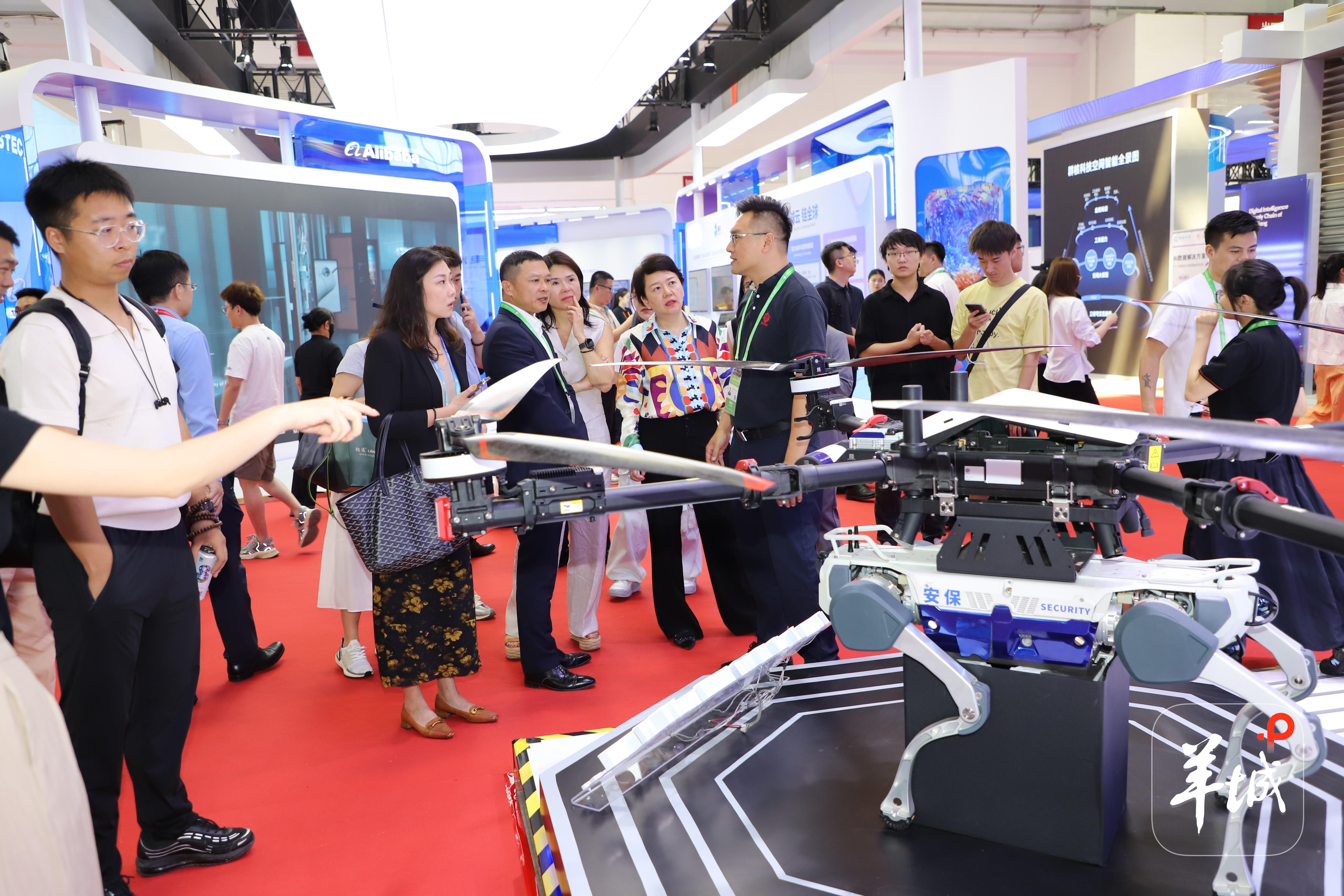 在E4馆数字科技链展区,杰创智能展位的“哮天犬”是这次展会的“网红”。这款专为应急救援设计的陆空一体具身智能机器人首次亮相,与“常青云”AI超融合一体机、电磁网捕巡防机器狗等创新产品共同展现技术实力。