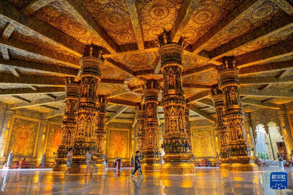 7月13日,游客在位于老挝首都万象的老挝艺术博物馆参观。