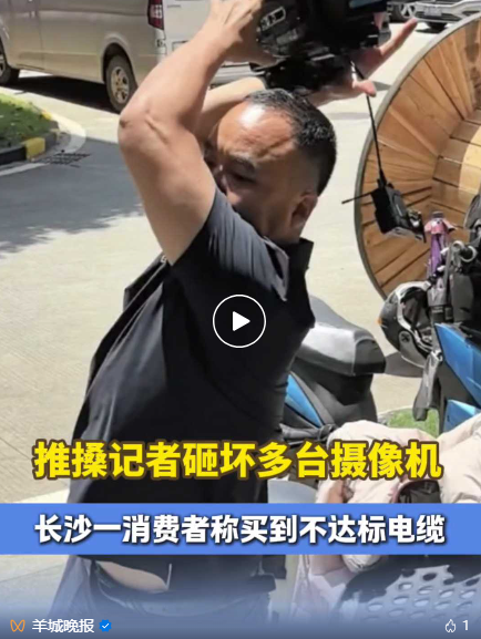 今天上午,湖南媒体发布一则视频。视频称,市民举报在湖南丰旭线缆有限公司买到疑似不合格产品,记者实地采访过程中遭企业负责人阻扰。视频画面中,一位男子从记者手中抢过摄像机重摔粉碎,并试图抢夺记者手机。
