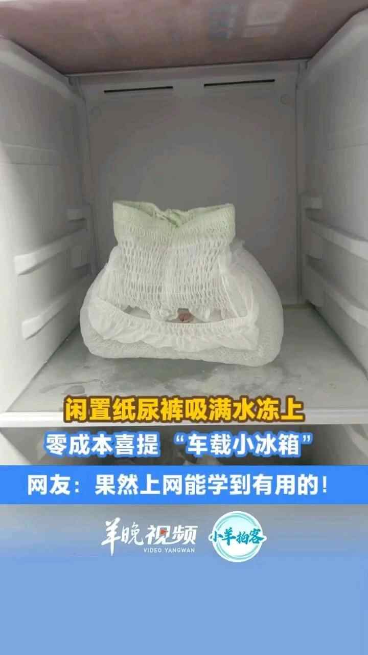 闲置纸尿裤吸满水冻上 零成本喜提“车载小冰箱” 网友:果然上网能学到有用的!来源:#小羊拍客