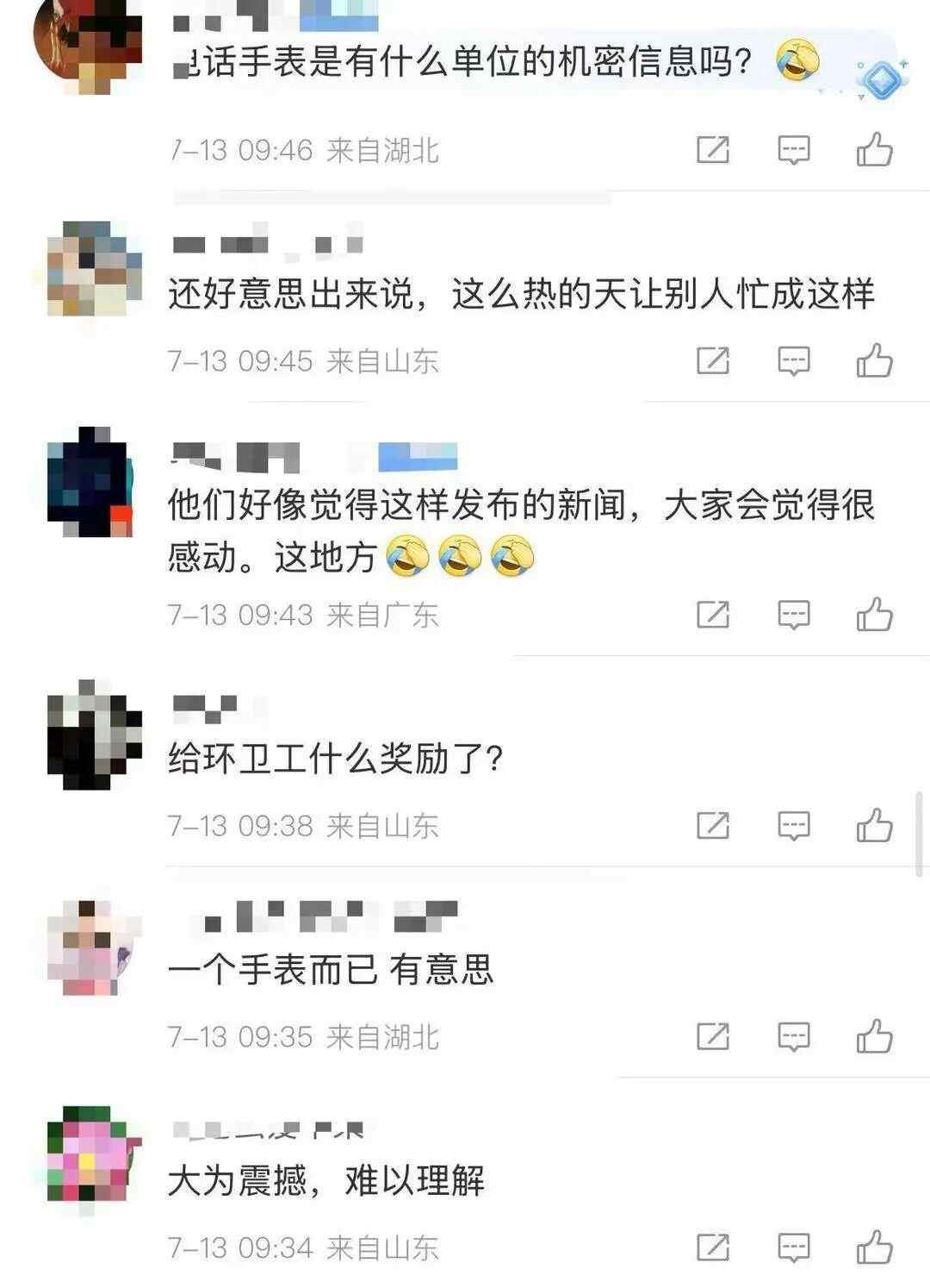 两名环卫工人花费4小时,徒手在8吨垃圾中找到了这块手表,这件事在当地被当作一件正面的暖心故事宣传,但不少网友对这件事发表了反面看法。