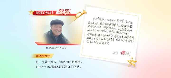 2025年5月7日,“归来仍是少年”采访组在苏州见到了新四军老战士、苏州市文联原副主席张景坤同志;没想到仅仅9天后,张老因病医治无效,在苏州逝世。这是张老生前留下的最珍贵的影像……