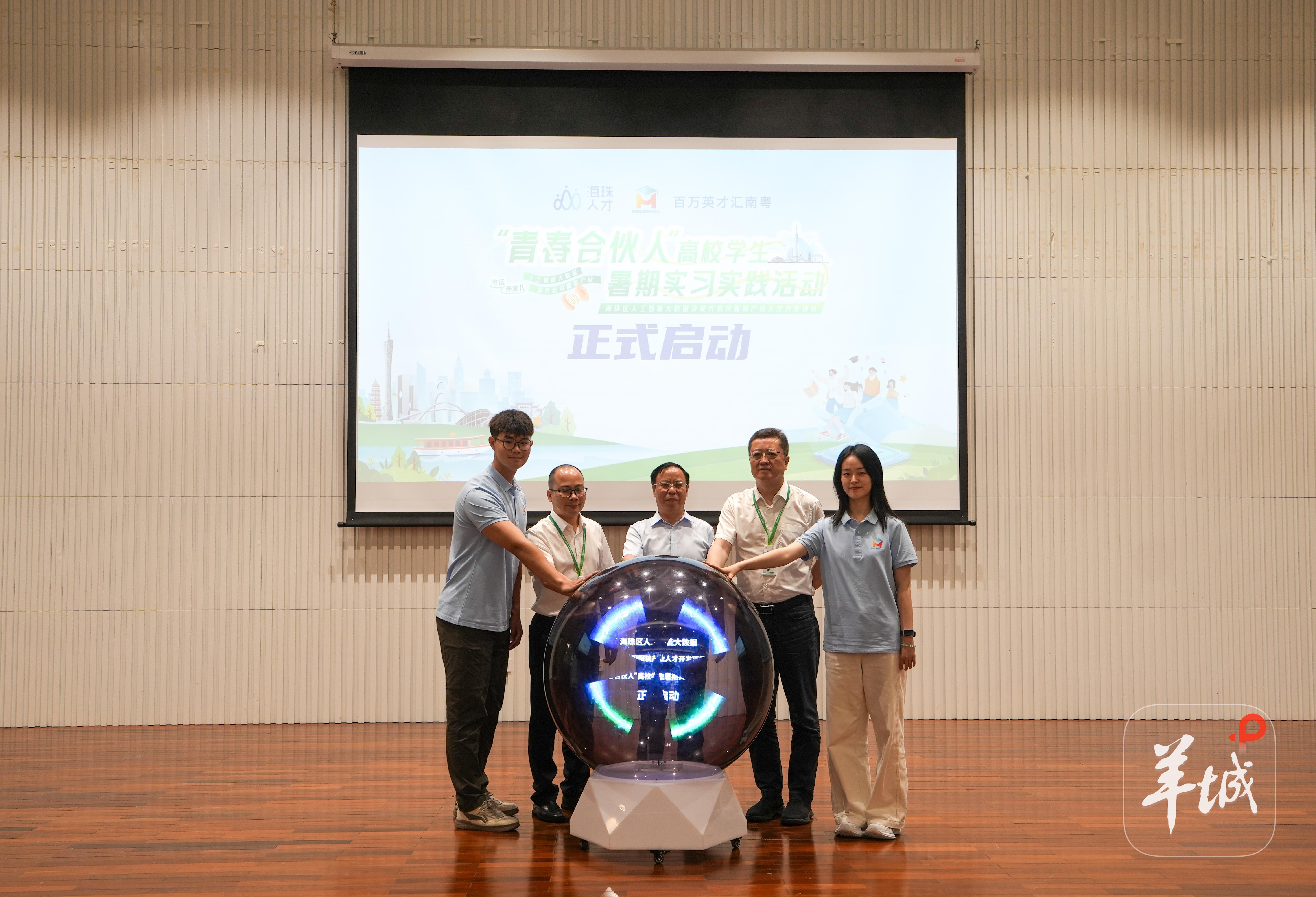 根据此前海珠区公布的情况,今年海珠区“青春合伙人” 实习实践活动,共设置了38个党政机关岗位和13个重点企业岗位,包括阿里巴巴研发工程师、三七互娱游戏系统策划、树根互联产品经理、云蝶科技副总裁助理等岗位,共向相关高校邀请到51名学生参加。在7月14日的启动仪式上,用人单位代表和学生代表,共同按下启动球启动实习实践活动,并在活动结束后共同前往相关单位开启实习实践之旅。