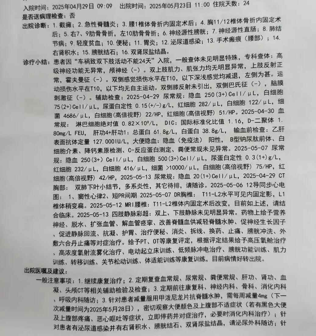 白女士说,现在急需医疗费,因为脊髓损伤通常需要6个月才能进行伤残鉴定,而她现在才治疗3个月。“这6个月正是我的黄金恢复期,甚至脊髓修复的窗口期可以长达两年。”白女士说,我绝不能为了结案而中断治疗,可这样一来,法律程序上就无法立即了结此案。我现在唯一能做的,就是要求对方先行垫付医疗费用。