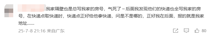 女子称,自己本打算报警,结果刚好在楼梯上遇到骑手,女子便发现该外卖收货地址是自己家,但邻居通过平台给骑手发消息让送到隔壁,女子一气之下找到对方,邻居竟称:可能不小心点错了,现在删了不就好了。
