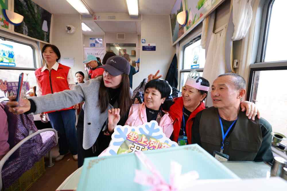 在政策支持下,一列列满载着银发游客的列车穿梭于祖国大江南北。