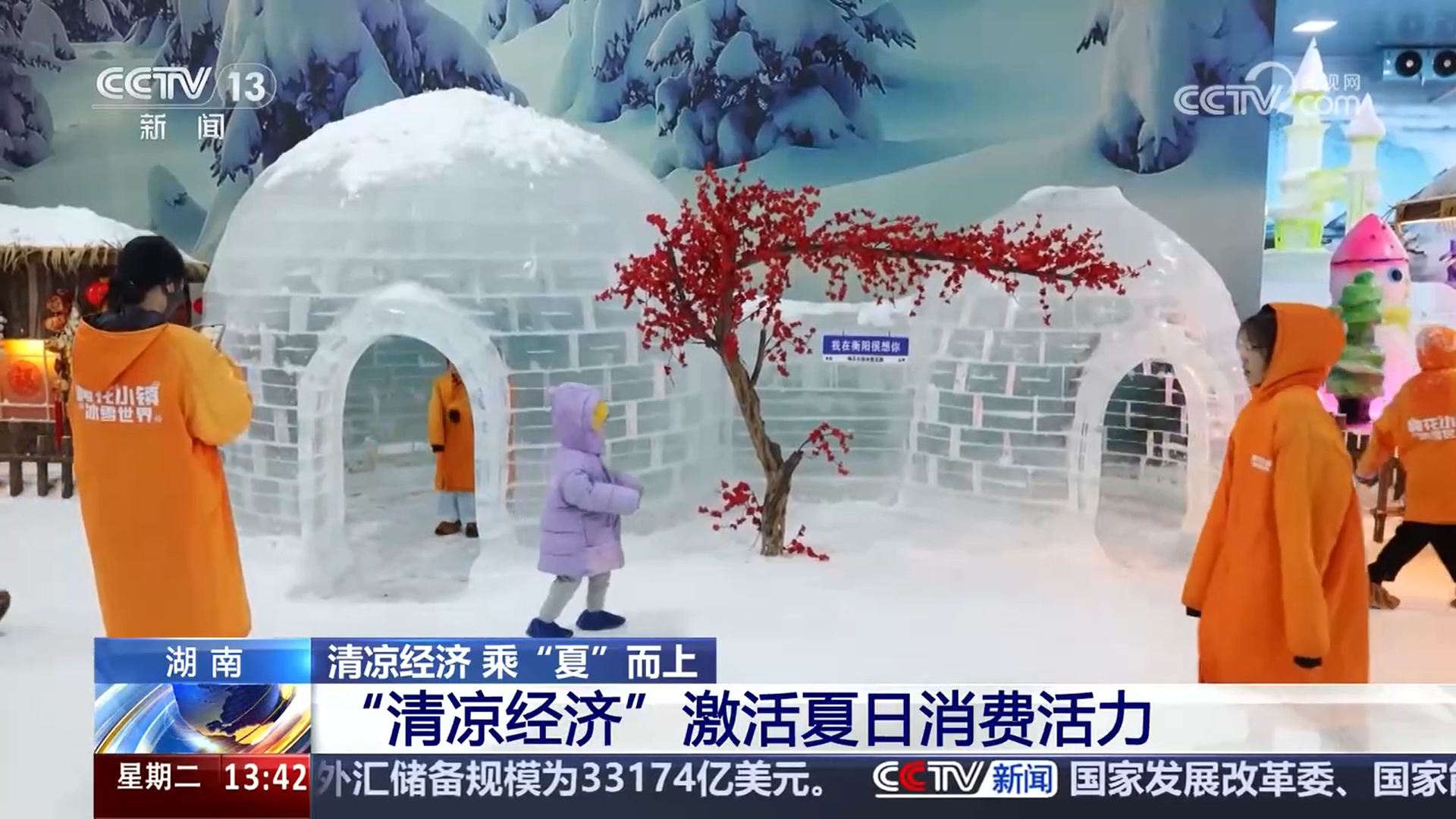 在湖南衡阳县西渡镇梅花村,这家室内冰雪游乐园成为当地暑期热门打卡地,纷飞飘落的雪花与冰城堡、雪屋相映成趣,打造出一个美轮美奂的冰雪童话世界。游客们不仅能在各式各样的冰雕前拍照打卡,还能体验从冰滑梯上飞驰而下的快感,尽情享受一秒入冬的冰爽体验。