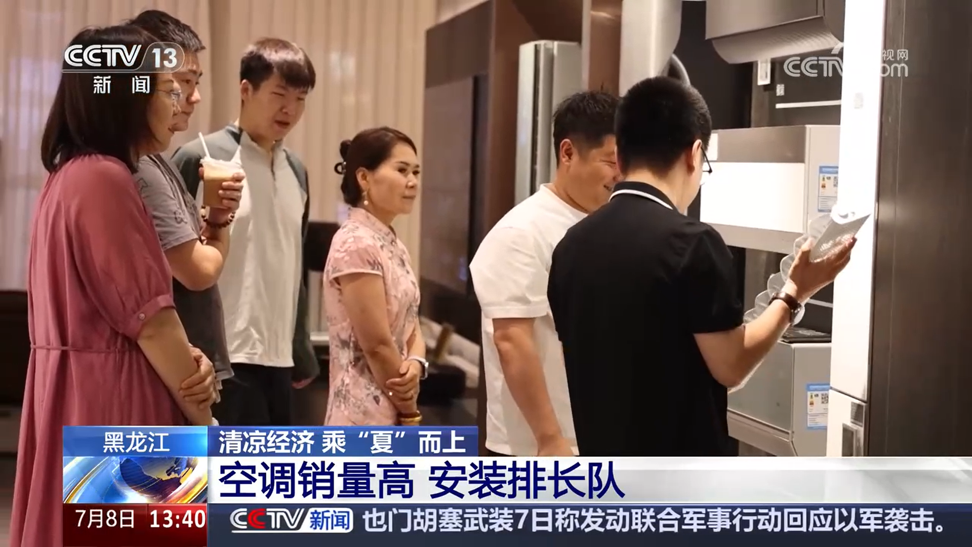 在哈尔滨市道里区的另外一家商场,空调销售同样火爆。工作人员告诉记者,空调销售走俏,空调安装师傅也忙得不可开交。平时从下单到安装最多只需要三天,但是现阶段空调安装订单已经排到了7月末。