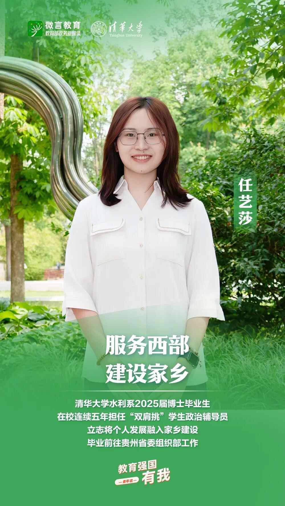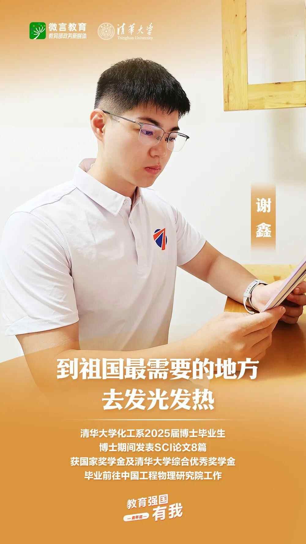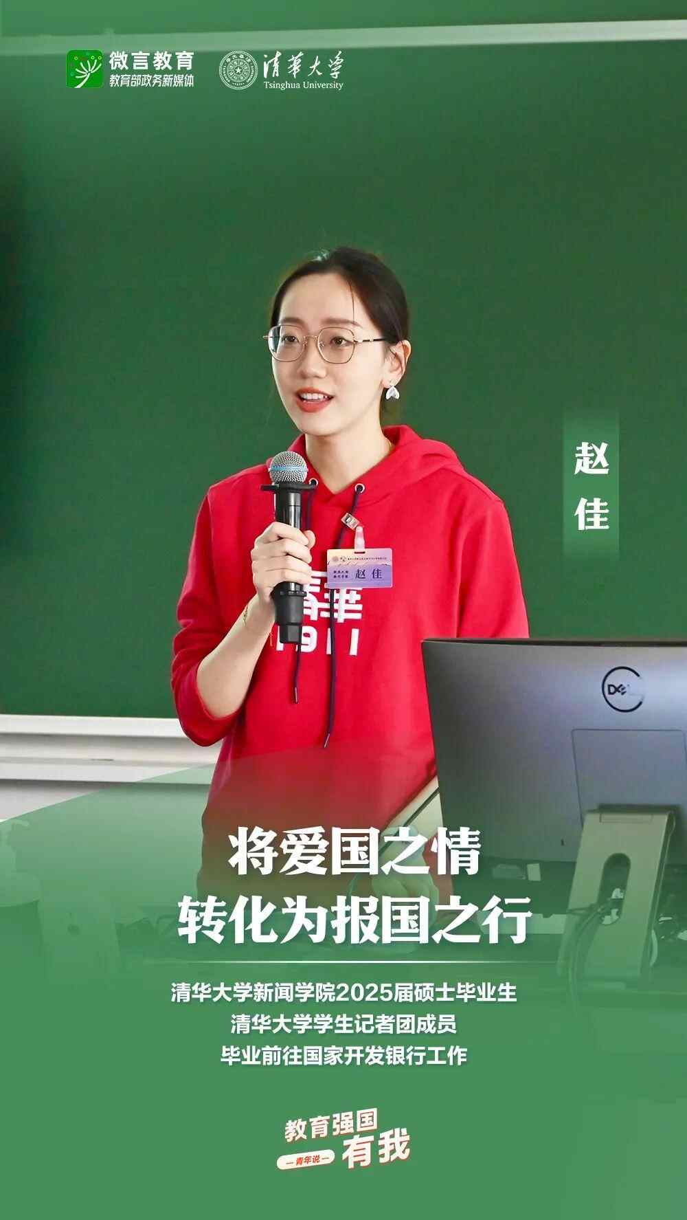 习近平总书记强调,希望广大青年坚定理想信念,厚植家国情怀,练就过硬本领,发扬奋斗精神,到祖国和人民最需要的地方发光发热,为中国式现代化建设贡献青春力量。教育强国建设,青年何为?教育部政务新媒体推出“教育强国,有我!”网络主题宣传活动之“青年说(报国篇)”系列,展现青年学子将个人理想融入国家发展的青春担当。今天,跟教育小微通过1个视频和1组海报,一起来看清华大学学子的毕业选择——