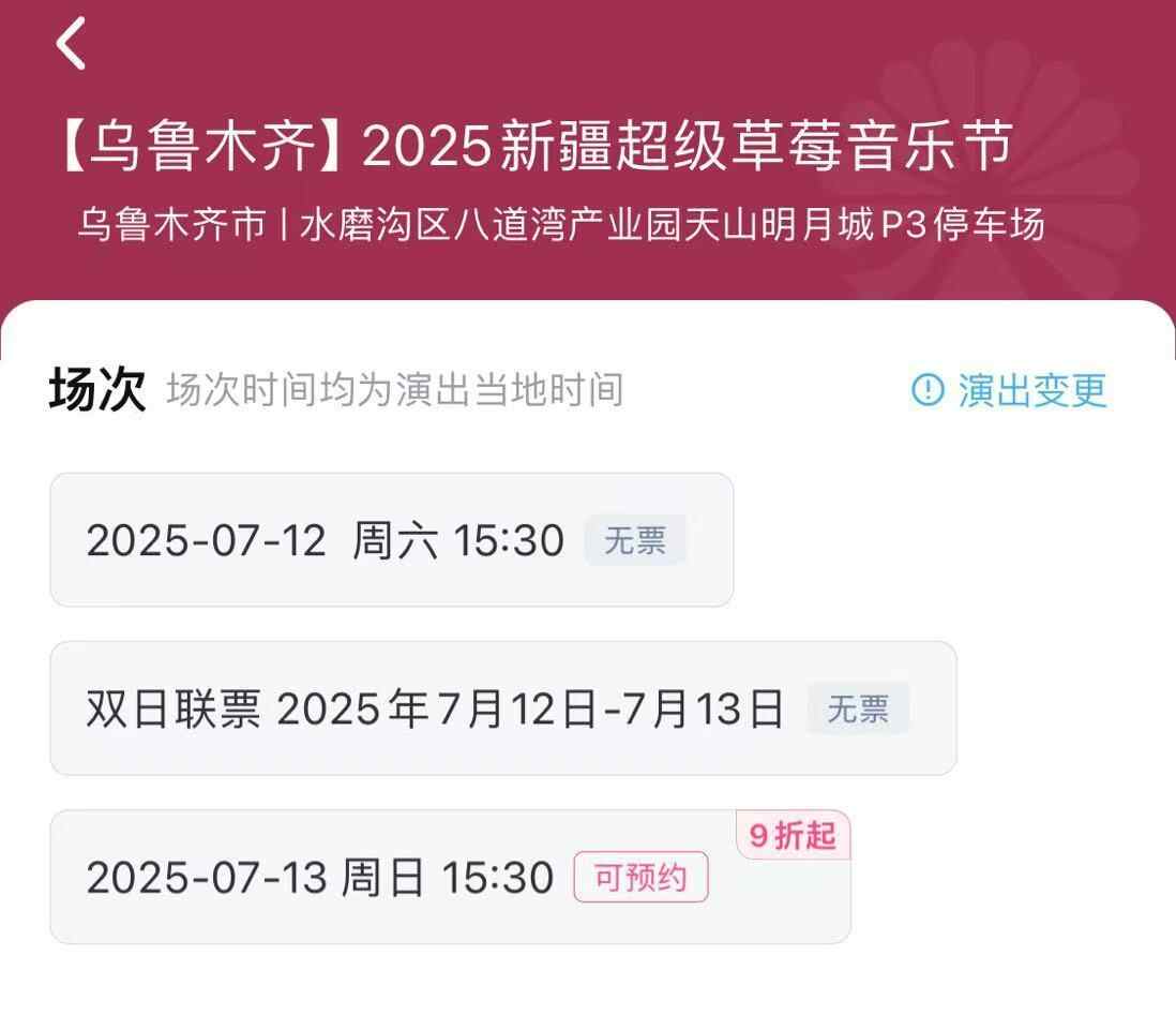 7月9日上午,记者在某票务平台上搜索发现,此次草莓音乐节7月12日的票已售罄,7月13日仍有余票。