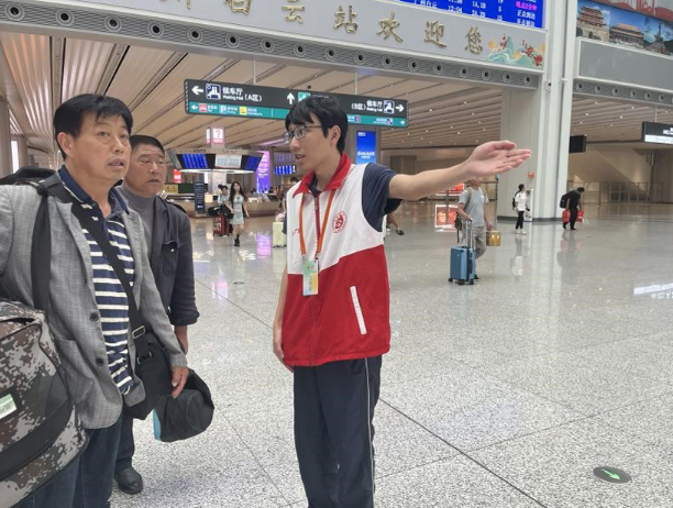 这样的志愿者还有很多。连续两年参与春运和暑运志愿服务的范睿恩将站台路线、车次调整等信息烂熟于心,精准解答路线指引咨询,成为旅客信赖的“活地图”;志愿者张亦帆在出站口遇到一名需乘坐地铁的视障人士,主动让对方搭住自己肩膀,全程护送至地铁站并与工作人员交接;志愿者谢宇灏看到一手抱婴儿、一手拖行李箱还需照看孩子的母亲,立即上前协助推行李并引导至母婴室......