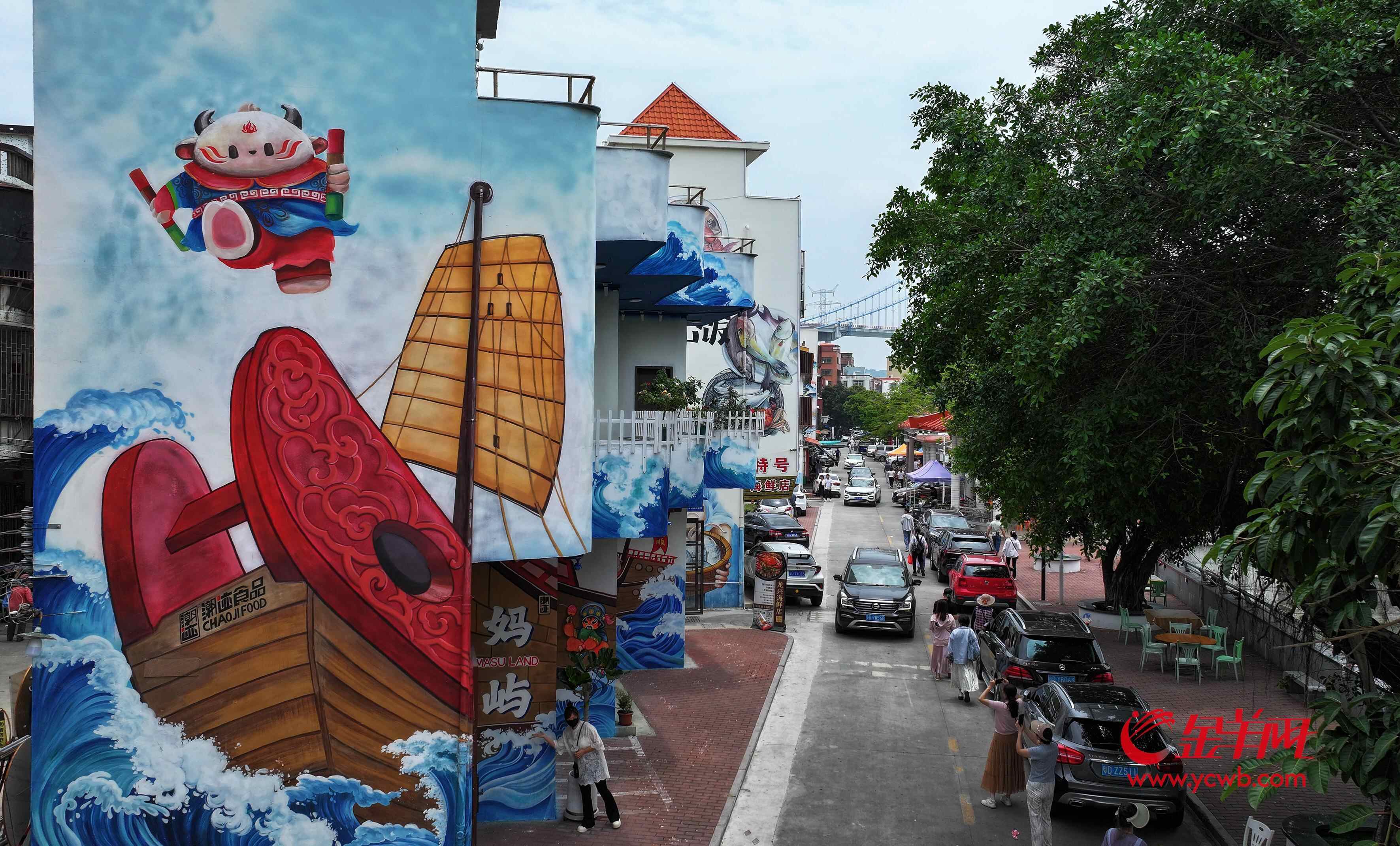 如今,旅游经济成为妈屿岛重焕生机的新引擎。今年“五一”假期,上岛车流近1.2万辆,人流量约4.2万人次。漫步岛上,极具特色的农文旅景观令人眼前一亮。民居外墙上,海浪纹样、红头船、潮汕鱼饭等彩绘展示着潮汕民俗文脉;29栋经过渔文化彩绘改造的农房,成为展示渔村风貌的新窗口。