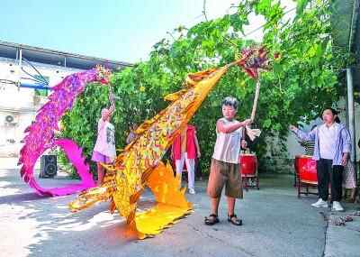 在河南博爱县柏山镇奉义社区,小学生在县级非遗传承人的指导下学习舞彩带龙。新华社发