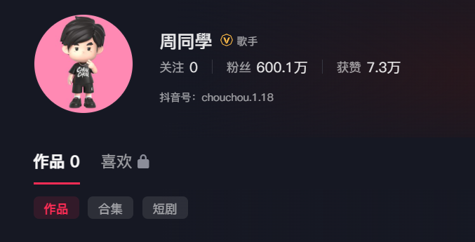 7月9日,周杰伦正式入驻抖音平台,名叫“周同学”,认证为歌手。记者搜索发现,截至18:00,该账号粉丝已达600万,主页依然暂无作品。