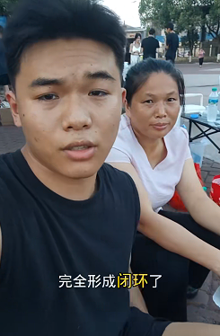 在视频中他感慨,曾经妈妈摆地摊赚钱送自己上大学,现在毕业后自己摆摊创业,为了回报妈妈当年为自己交的学费,这场景和当年形成了闭环。