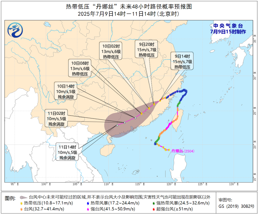 7月9日16时,中央气象台发布重要天气提示,提醒我国东南沿海、华南、西南等省(自治区)公众,警惕今年第4号台风“丹娜丝”的残余环流和西南季风共同影响下所带来的强降水,以及伴随强降水所带来的次生灾害。