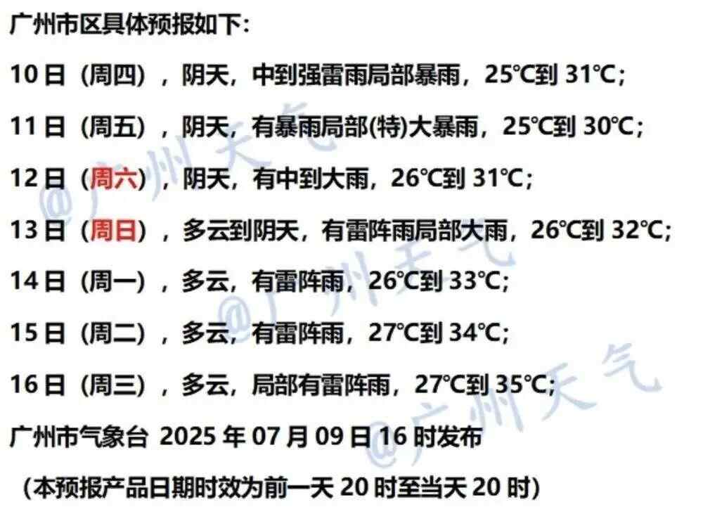 广州市气象台7月9日傍晚市区7天预报 图/@广州天气