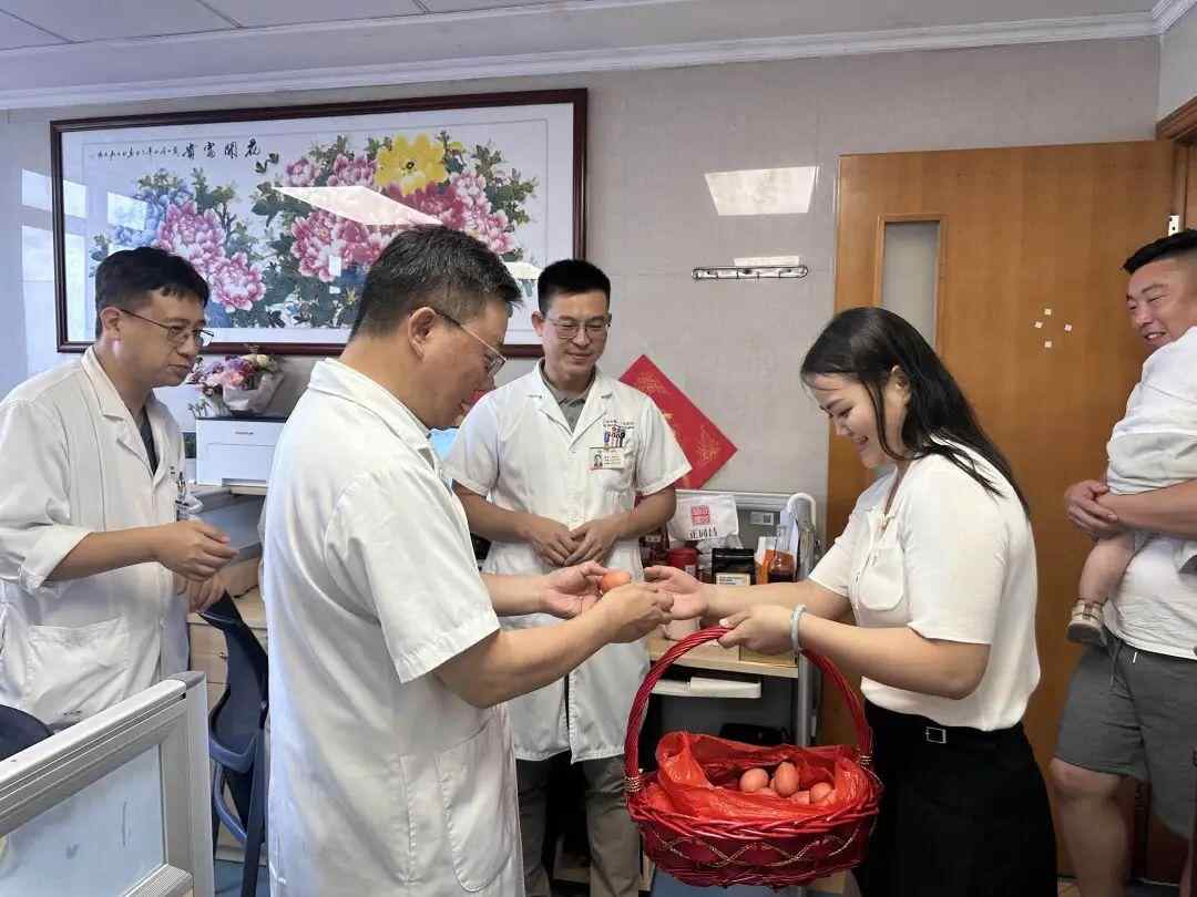 “当时检查说我已经卵巢功能衰竭了,就是没得生了,我也就没报希望了。”谁曾想,2023年,邱女士突然得知自己怀孕了!回医院检查评估后,她与医生们约定好,如果顺利生产就带着红鸡蛋再来表达感谢。7月8日上午,他们一家来到医院内科楼,给当时救助她的医生们派发寓意喜庆吉祥、生命繁衍的红鸡蛋,感恩医者仁心,分享福气圆满。