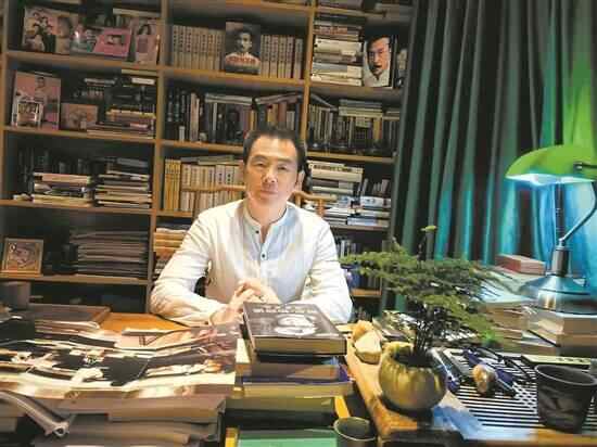 曾想给书房取名“朴厚居”,存朴实厚拙之意,一直未正式挂出。藏书以爱好为主,历史类、人物传记、戏剧影视专业书籍占了大半。书房不大,中式书桌、民国风台灯、明式官帽椅、罗汉床、浅灰色宣纸感墙布、故宫红房顶、墨绿色幕布式窗帘、朝西的落地窗,视野开阔,蓝天白云悠悠眼前。 ——董明