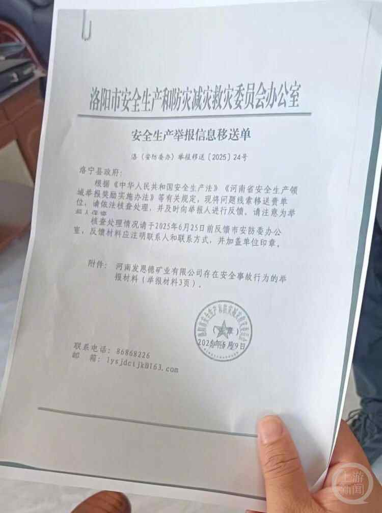 举报的安全生产事故是否属实?举报者信息如何泄露?市局发给县政府的举报信息移送单为何出现在被举报对象办公室内?对此,7月7日,洛阳市应急管理局相关工作人员回复记者,调查工作正在进行,待查清后会反馈给郭先生。