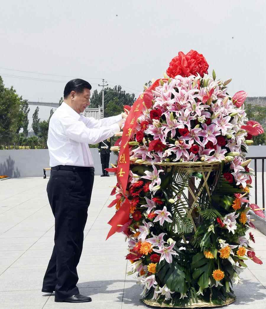 2017年6月21日,习近平总书记来到兴县,参观晋绥边区革命纪念馆,向革命烈士敬献花篮。新华社记者 李学仁 摄