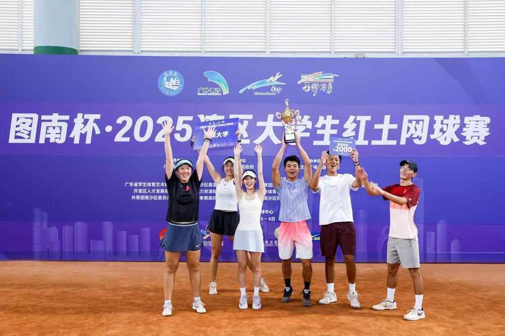 7月6日,图南杯·2025湾区大学生系列赛网球团体赛在南沙国际网球中心红土场落幕。历经两天近百场角逐,粤港澳大湾区多所高校网球精英齐聚,奉献了精彩纷呈的青春对决。最终,深圳大学代表队力克群雄,捧起“图南杯”冠军奖杯。