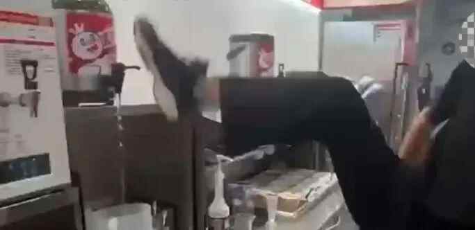 这名网友晒出的视频显示,一名男子用脚踢向操作台上直饮水桶的水龙头,尝试进行关闭。直饮水桶的下方是一个盛有液体的量桶。男子所处的房间以及直饮水桶上均贴有蜜雪冰城的LOGO。视频的配文是:突然翻到以前在小雪打工干的事情,笑死我了。目前,上述视频已经删除,该网友也将账号内的视频全部清空。